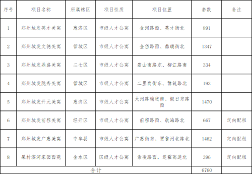 按照《鄭州市人才公寓管理暫行辦法》(鄭政辦〔2023〕11號)要求,2023年全市第十批人才公寓配租事項公告發(fā)布。此次配租人才公寓項目8個,其中7個為鄭州城發(fā)美寓系列人才公寓,具體情況如下:
